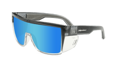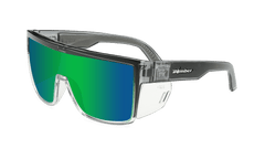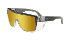 Protect your vision both on and off the job with these oversized flat top pink mirror lens sunglasses, fully equipped with removable side shields. When your job requires ANSI Z87+ safety rated glasses or when extra side protection is necessary, simply attach the side shields into place. Or when you don’t need the extra protection from sideways wind and debris, you may prefer to go without the added weight, and goggle-like effect of the side shields.